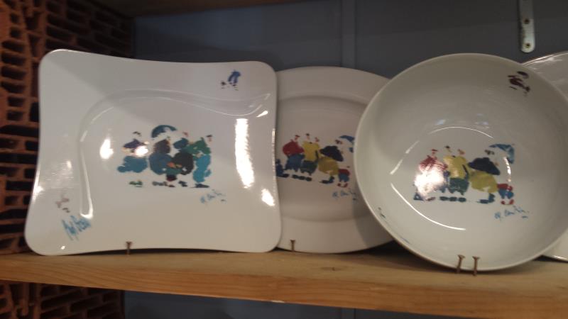 These decorations are creations of the painter Joëlle Josselin of the Relecq Kerhuon near Brest, specialist of the costumes paintings of Brittany she created a special range adapted to the porcelain and gave a touch of modernity to these decorations. A very personal style, a dynamic painting that represents very well the modernity of our Brittany, imbued with its tradition. A logic well adapted to the Ceramics of Cornouaille.