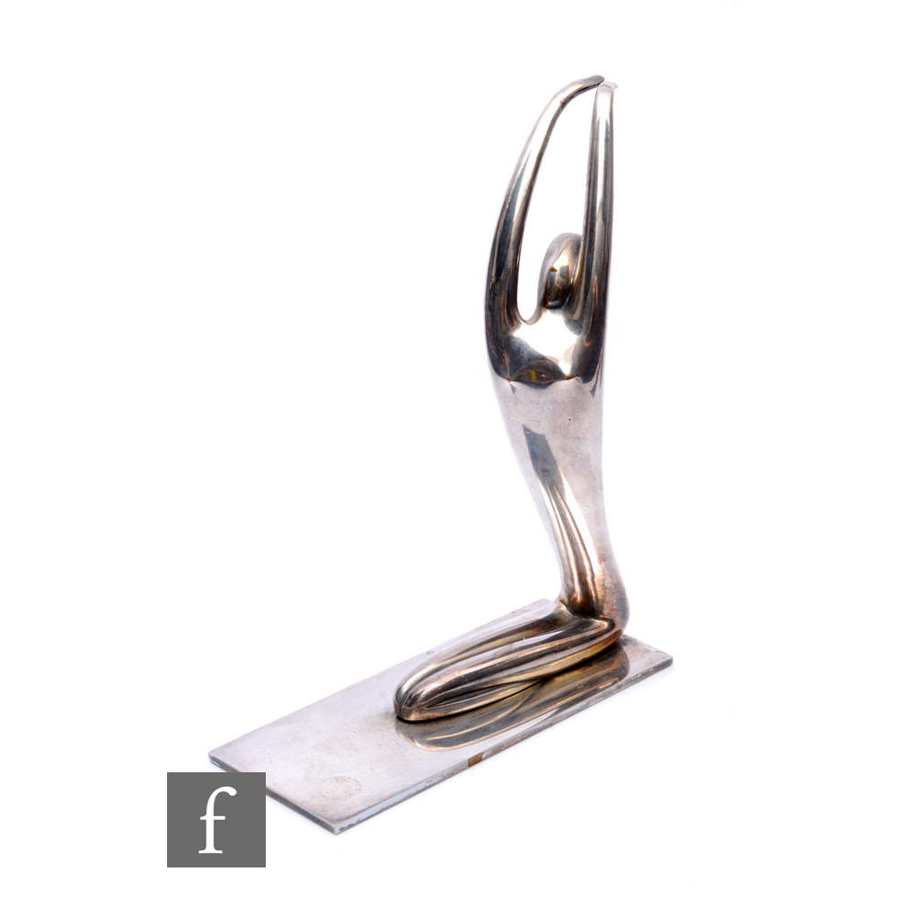 Karl Hagenauer A 1920s Austrian silvered bronze figure of a stylised female nude in kneeling pose