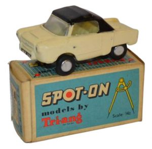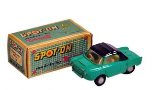 Spot-On was a range of die-cast toys produced by British toy factory Tri-ang from 1959 to 1967 (Tri-ang was a division of Lines Brothers, which had been established as a toy maker in 1935). The Spot-On range was created in response to the success of rival toy company’s Dinky and Corgi. Dinky had had great success in the early 1950s with its die-cast range and in 1956 Corgi entered the market. The Spot-On trade mark was registered to Triang based in Merton Surrey, this was in December 1958 and in the following year ‘Spot On Models Ltd was incorporated on the 12th February 1958. The Spot-On range was made at the Lines Bros factory in Northern Ireland.