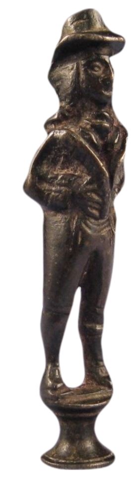 The tobacco stoppers made of cast metal are the ones that have survived in more numbers than the wooden carved examples. They include busts of full length figures of historical characters such as Charles I, Nelson, Napoleon and figures Dickens. The Duke of Wellington was a popular figure for tobacco stoppers having published an edict banning tobacco in barracks he was actually nicknamed the ‘greatest tobacco stopper’.