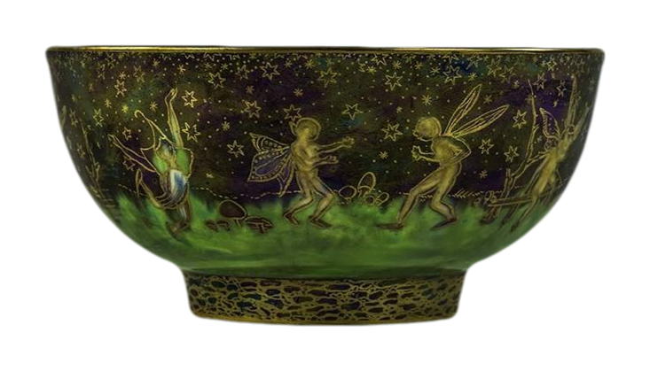 Manufactured by the Wedgwood factory from 1915 to 1929 after original designs by Daisy Makeig-Jones (1881-1945), the ‘Fairyland’ line proved to be popular in the United States as well as in the UK. Credited with helping improve Wedgwood’s struggling profits, Makeig-Jones’ novel designs were far more than ‘pretty patterns’.