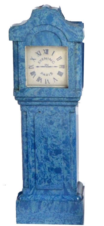 A Bourjois bakelite perfume container in the form of a Grandfather Clock An Evening in Paris Collection. The clock face reads Evening in Paris.