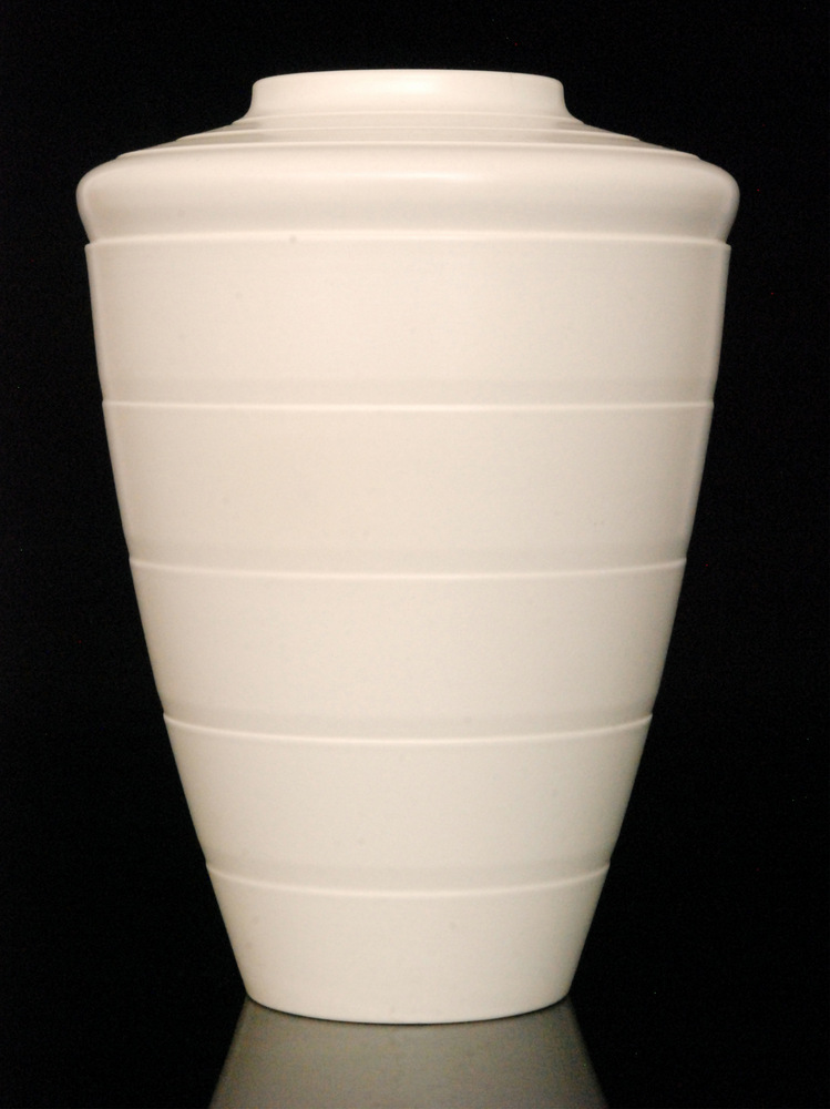 with vertical banding in a moonstone glaze (height 30cm)
