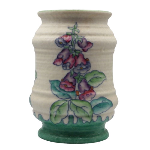 In the world of pottery and ceramic artistry, few names resonate as strongly as Charlotte Rhead. Born in 1885 in Burslem, Staffordshire, England, Rhead was a talented and influential ceramic artist and designer, creating some of the most exquisite and memorable pieces of the early 20th century. Among her vast repertoire of designs, the Foxglove pattern stands out as a testament to her skill and creativity. The pattern is fairly common and is popular with collectors, and pieces can often be found at auction and on ebay. We take a look at some examples along with a realised auction price guide and value guide.